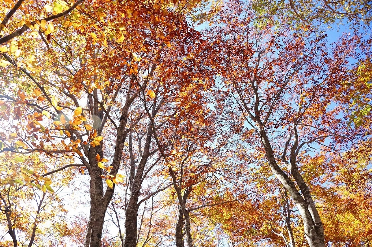 暖房も使うようになって冬の気配を感じていますが、まだ秋です。白山麓に広がる広葉樹林では、 紅葉を楽しめます!