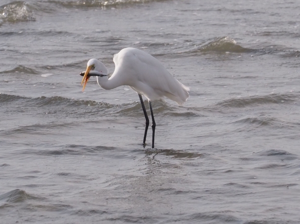 ゲットしたボラを丸飲みし、喉?首?がボラの形をしていました・・・