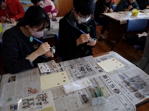 次に、大人も子供も楽しめるお待ちかねのカモのデコイ塗りの時間です。