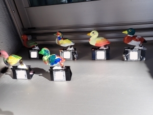 デコイとは、昔、狩猟のため「おとり」として使われた木彫りの鳥の模型です。