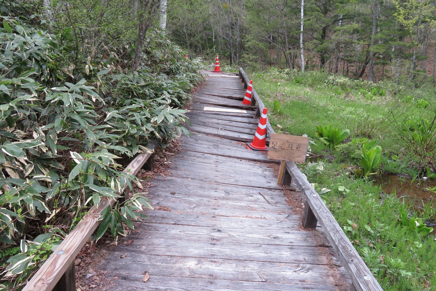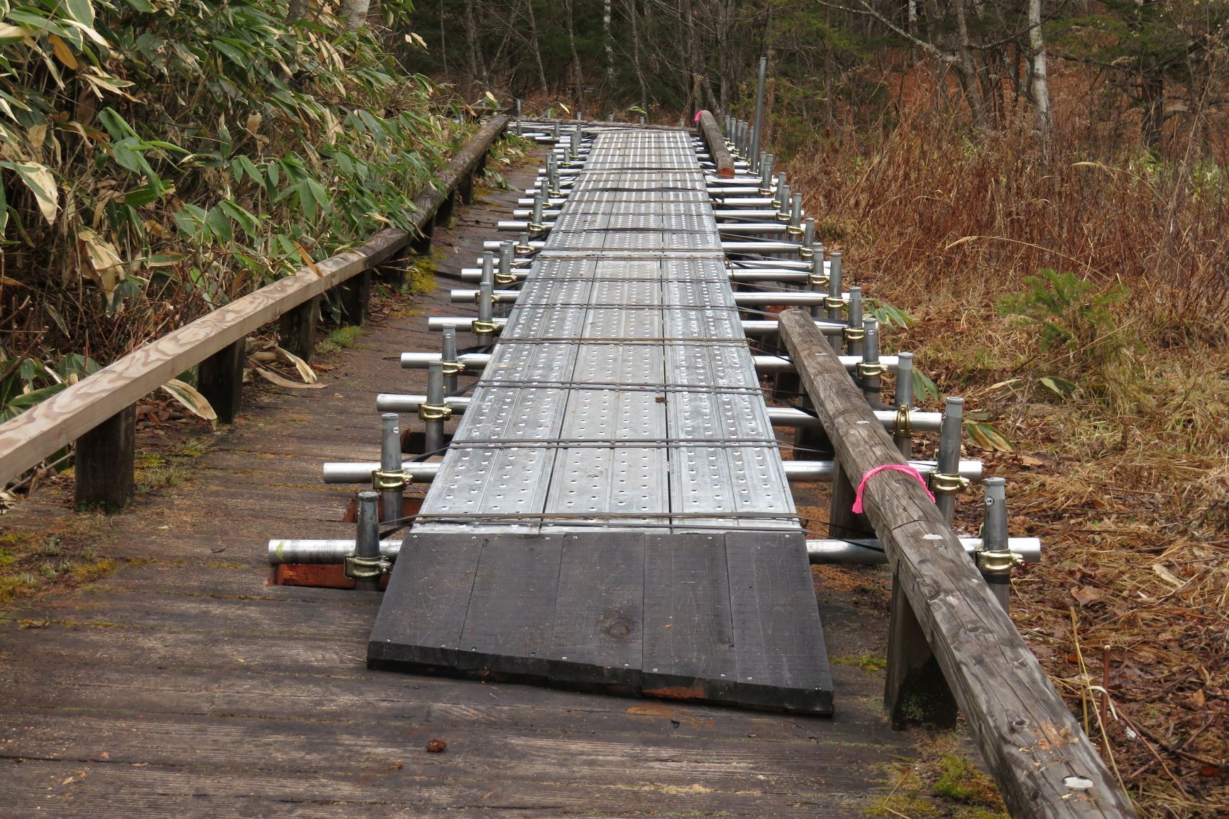 それでも、入口付近の木道が腐朽して傾いてしまい、通行しにくい状態になっていました。