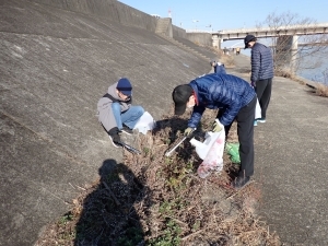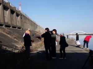 今回の清掃場所は、新川右岸の堤防。上流・下流の二手に分かれて、清掃します。