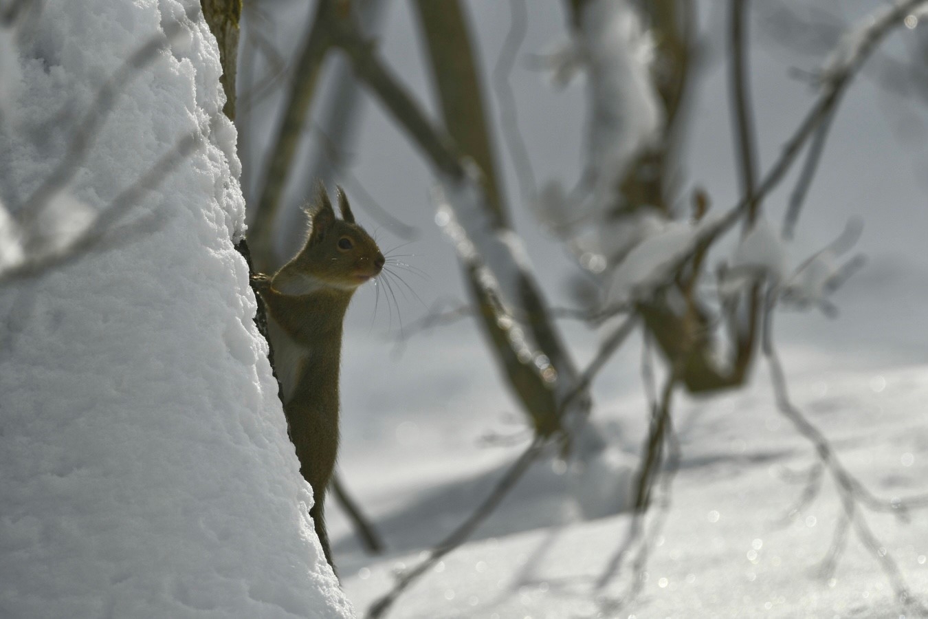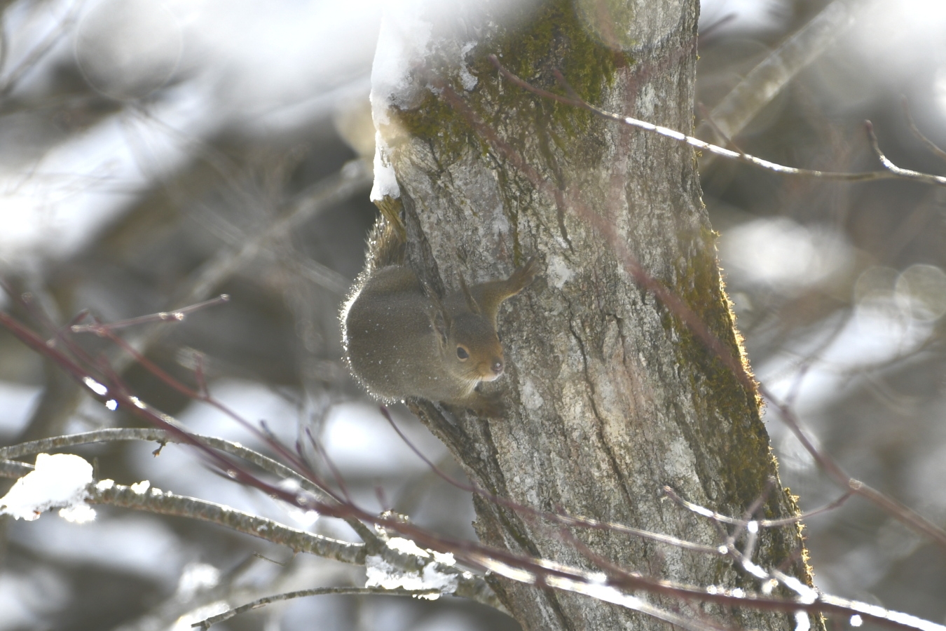 気温マイナス4度、朝9時の妙高高原。雪の上をせわしなく移動するニホンリス。