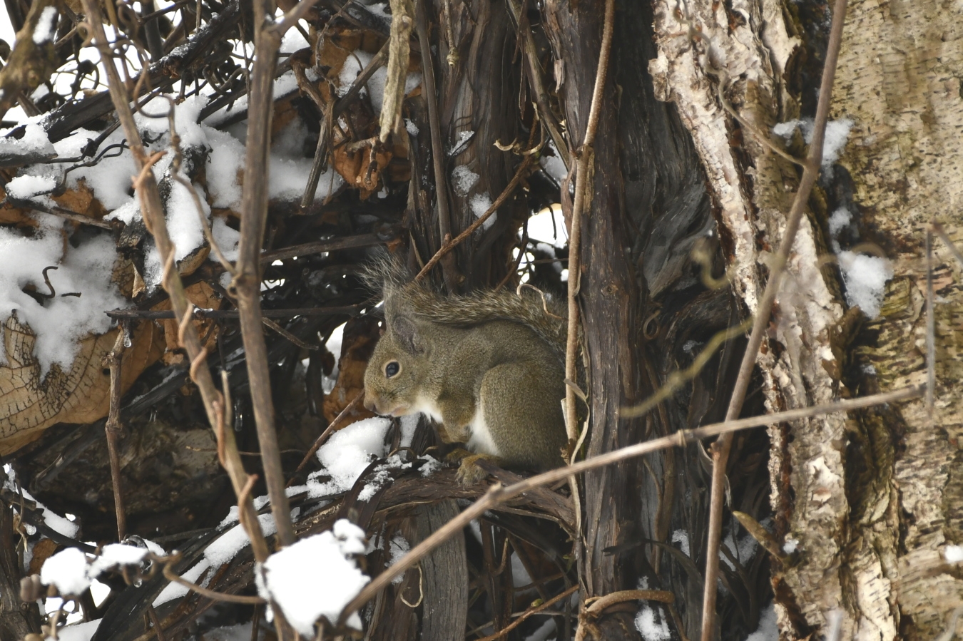 秋のうちに樹洞や枝の間に隠しておいた食料を回収してまわっていました。