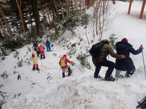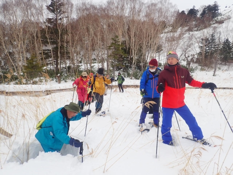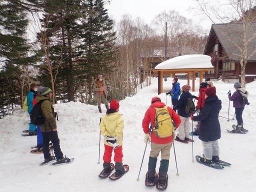 参加していただいたみなさん楽しくお話ししたり、真剣にガイドさんの解説を聞いたり、スノーシューで歩くのになれた頃はゆるやかな斜面をスノーシューで駆け下りたりと思い思い楽しんでいただけたようでした。