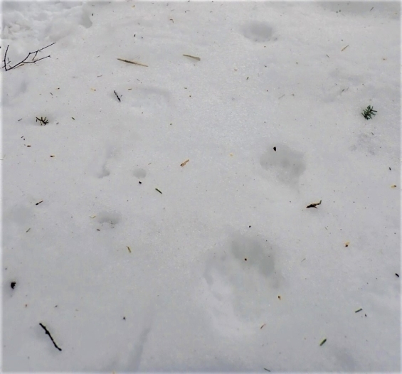 特に雪が降った翌日だと動物の足跡がはっきり雪上に残りますが、今回はうっすらと残っていました。