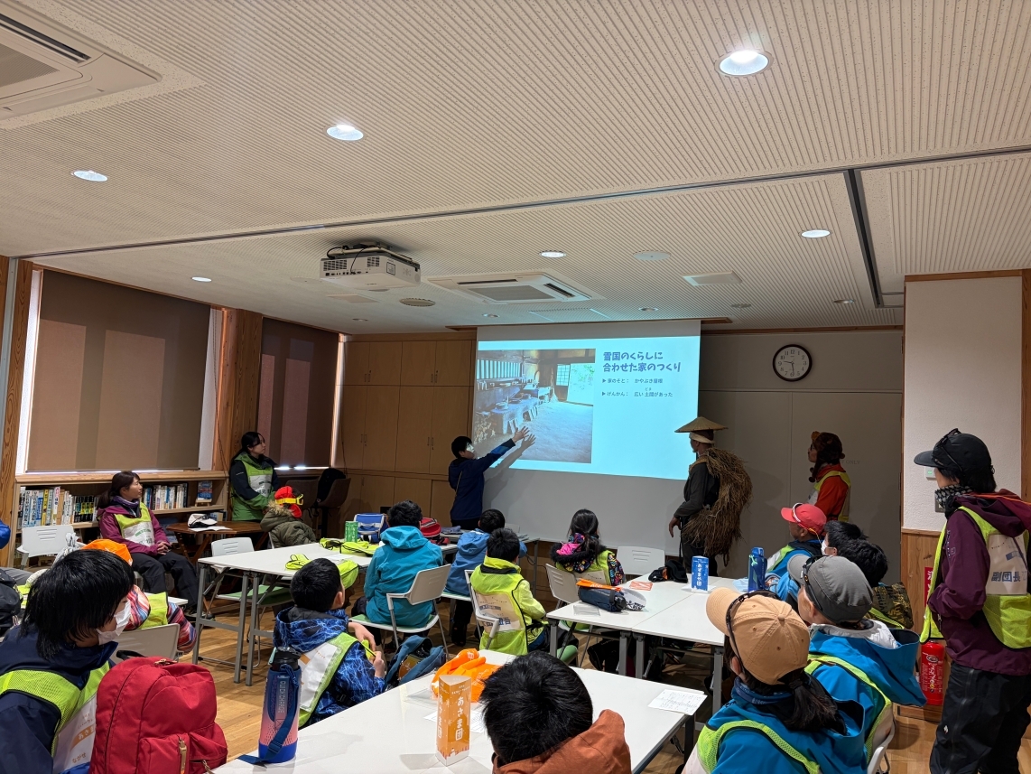 雪国にまつわる〇×クイズや菅笠をかぶって雪上リレーなどたくさん動いて、遊んで、学びました。