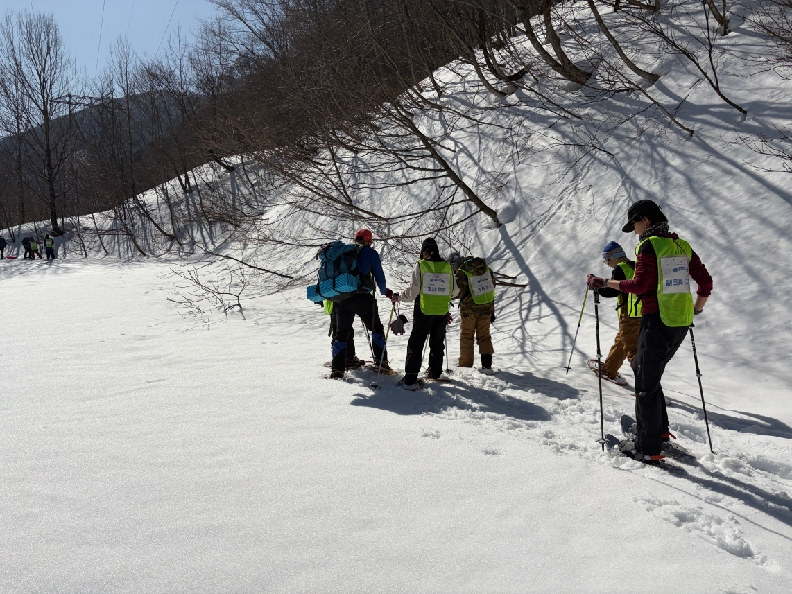 地元の子どもたちも、初めて体験するかんじきの歩き心地に最初は慣れない様子でしたが、当日は晴天で比較的雪が固くあまり沈まなかったこともあり、すぐにコツをつかんでいました。