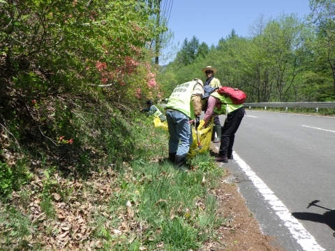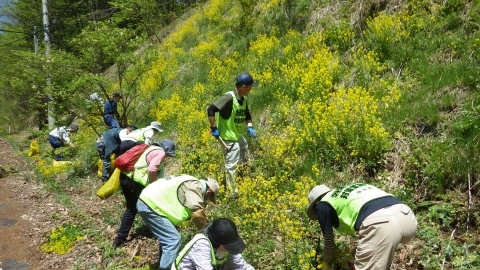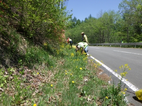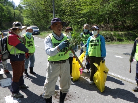 5月10日(水)にチャツボミゴケ公園周辺で、「白根山系の高山植物を護る会」主催の外来種駆除作業(参加者30名、参加団体は後述)が開催され、当所も参加させていただきました。