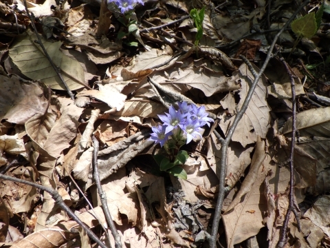 駆除活動を続けている成果か、昨年は見かけなかった在来種のフデリンドウが咲いているのが見つかりました。