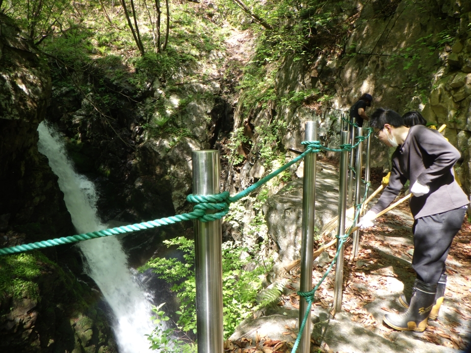 5月10日(水)の午後は「四万温泉協会」主催の摩耶の滝遊歩道清掃作業(参加者28名、参加団体は後述)が開催され、当所も参加させていただきました。