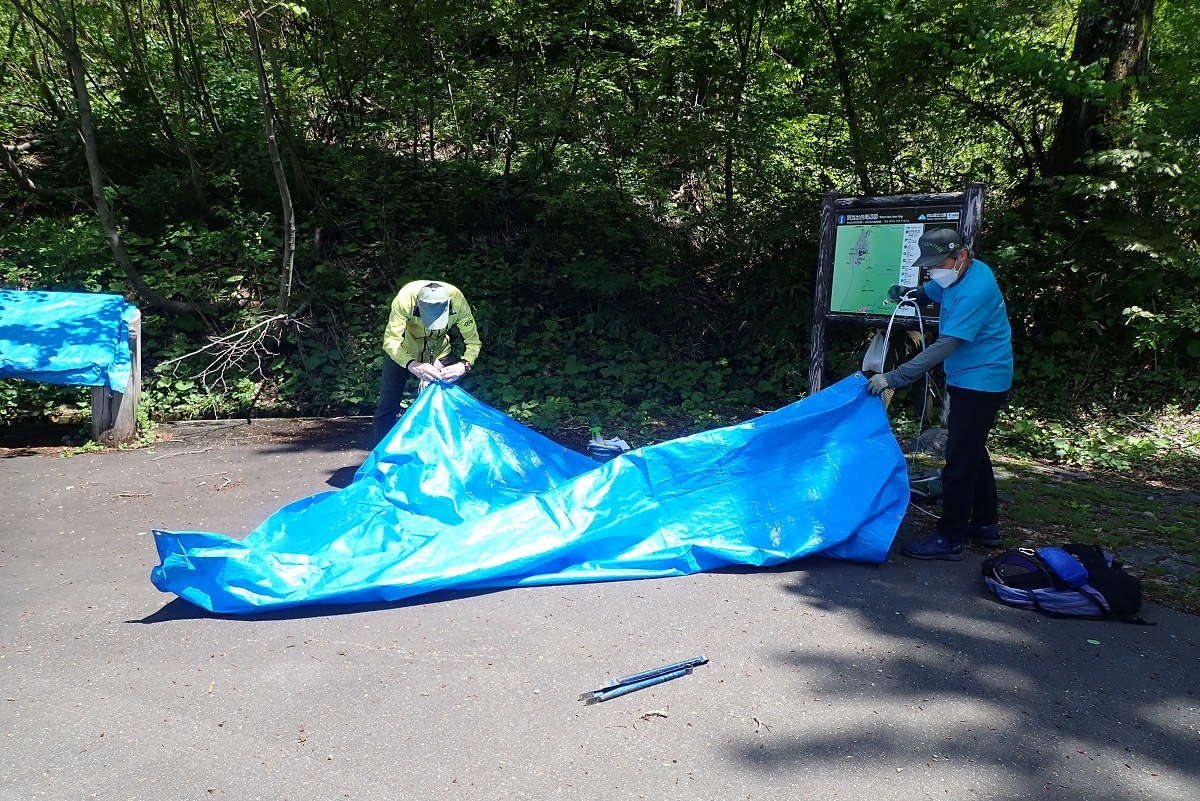 このブルーシートで覆ったり、取り外したり、看板を掃除する作業もパークボランティアが担っています。