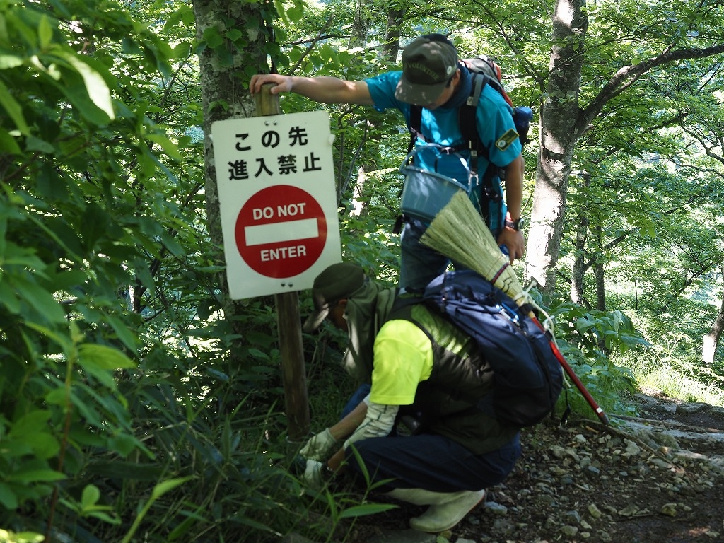 登山に必要な装備に加えて、看板や道具を担いで急な登山道を上っての作業は大変なことだと、ご想像いただけるのではないでしょうか。