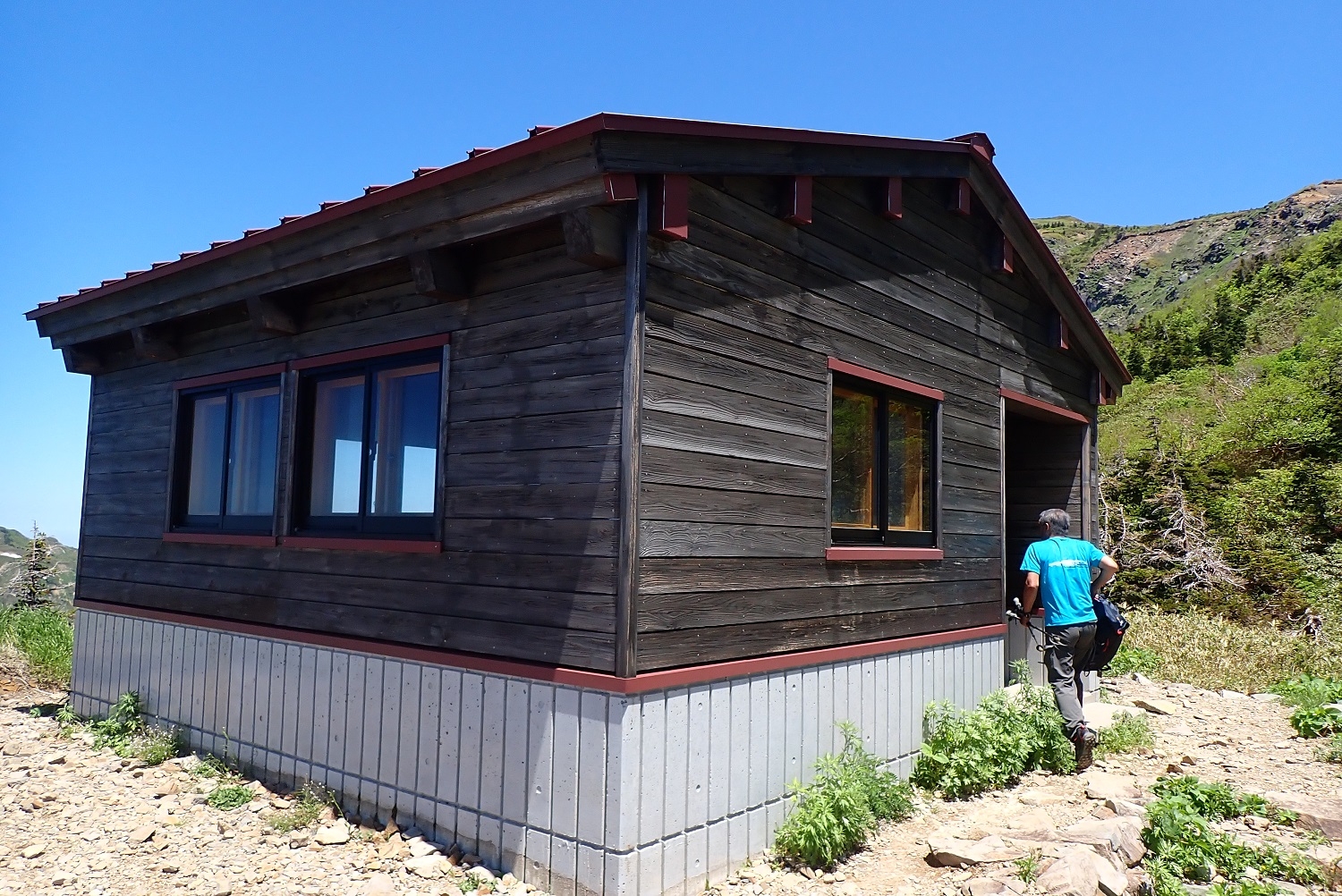 このため、どちらの避難小屋へも掃除用の水を1人1~2リットル担いで登っています。他にも掃除に必要な道具は全て担いで登ります。もちろん登山に必要な道具や飲食物も自分で背負っていきます。