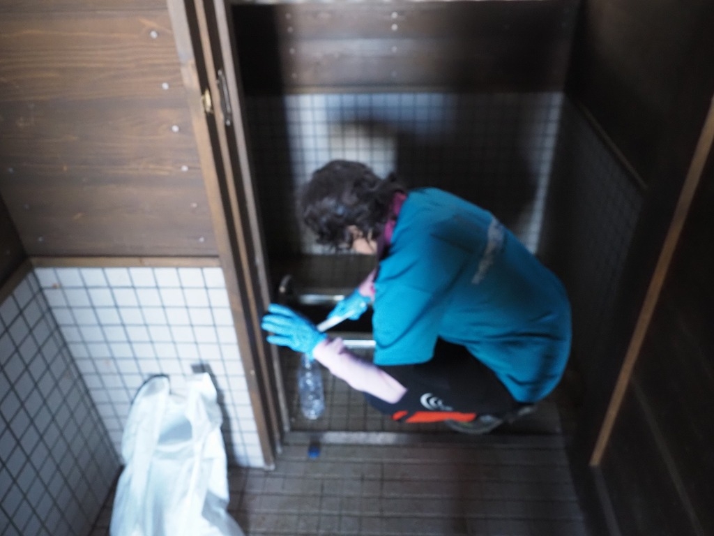 冬期トイレを始め、冬の間使用されてきた避難小屋の中は汚れていますが、いつもパークボランティアの力で手際よく掃除されていきます。