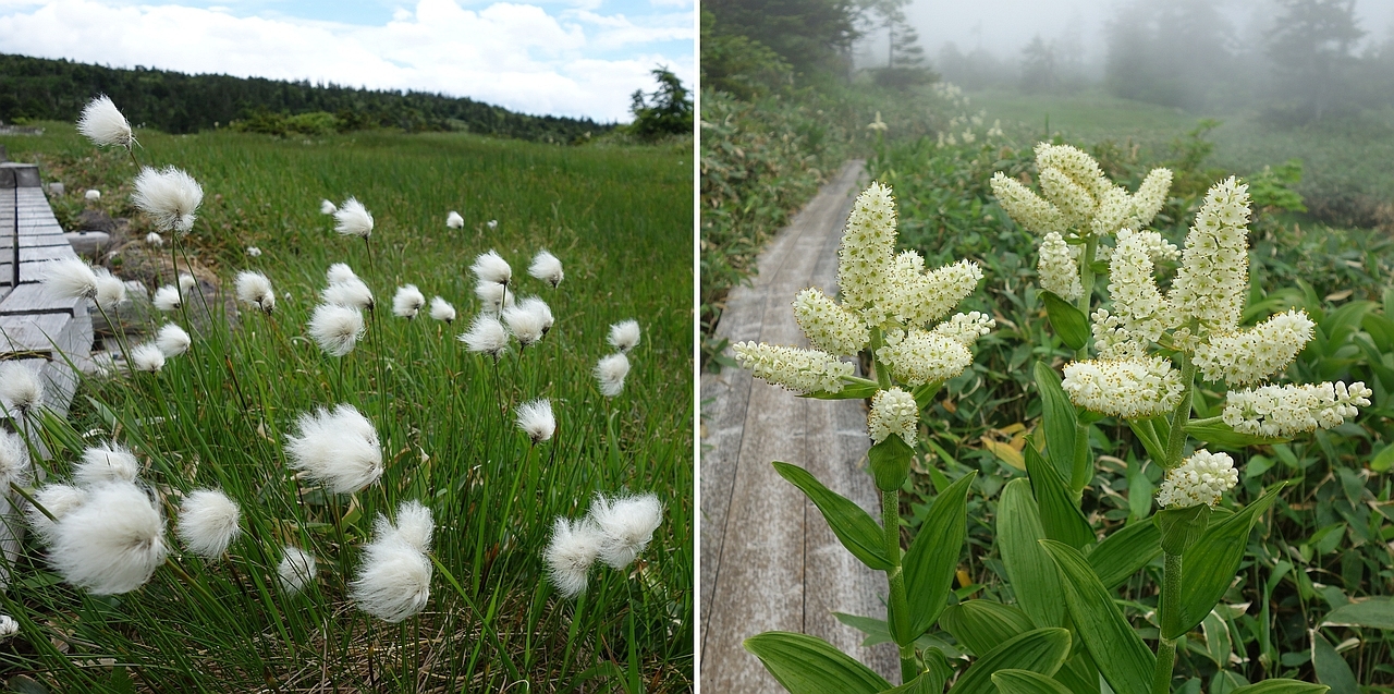 コバイケイソウの花とワタスゲの綿毛は、まだ汚れが少ない状態でした。