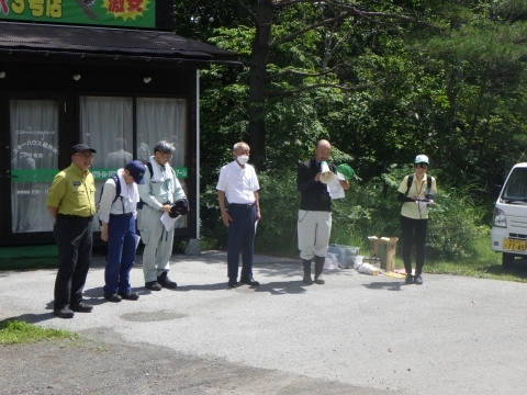 嬬恋村村長、吾妻環境森林事務所所長、吾妻森林管理署署長から御挨拶があり、当所所長から「山から海へ、海から山へ自然は循環しているので、ここでゴミを拾うことで、山はもちろん海を守ることにもつながる。そういうことを思いながら活動していただければ。」と挨拶中にお願いがありました。