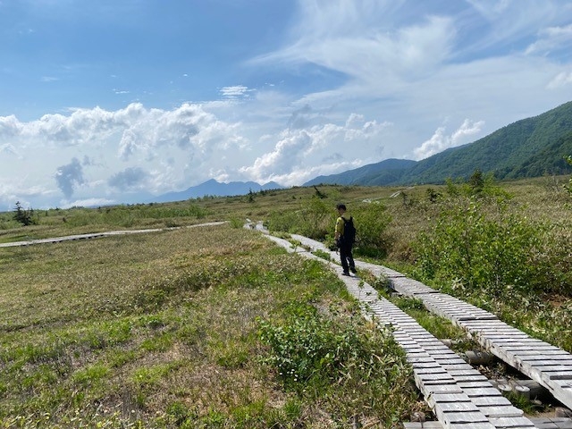 湿原には木道が敷かれており、木道上に伸びるササなどの草刈りをすることで安全に散策や登山を楽しんでもらえるように整備をしました。