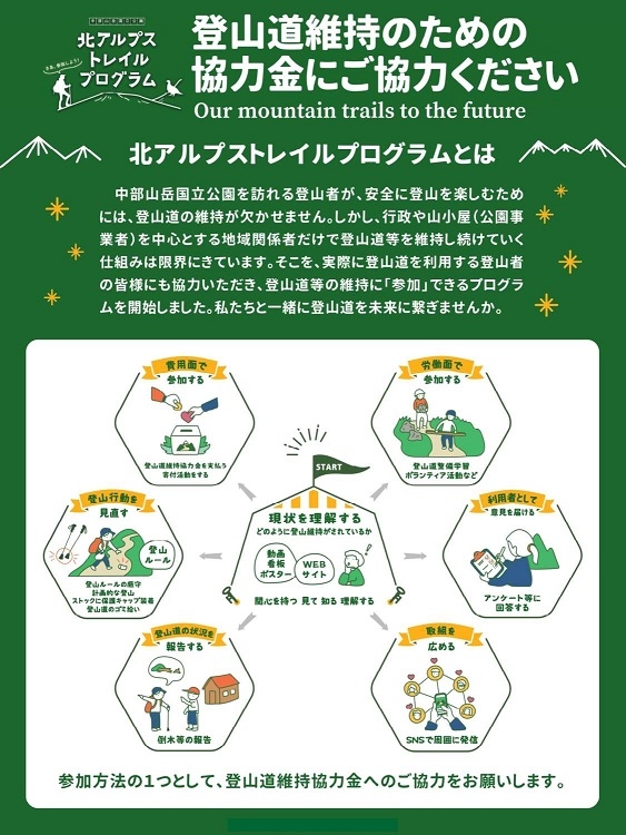 登山道を未来に繋げるためにも「北アルプストレイルプログラム」への参加をお願いします!