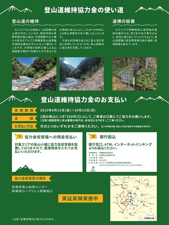 ■「北アルプストレイルプログラム」飛騨側実証実験の開始について