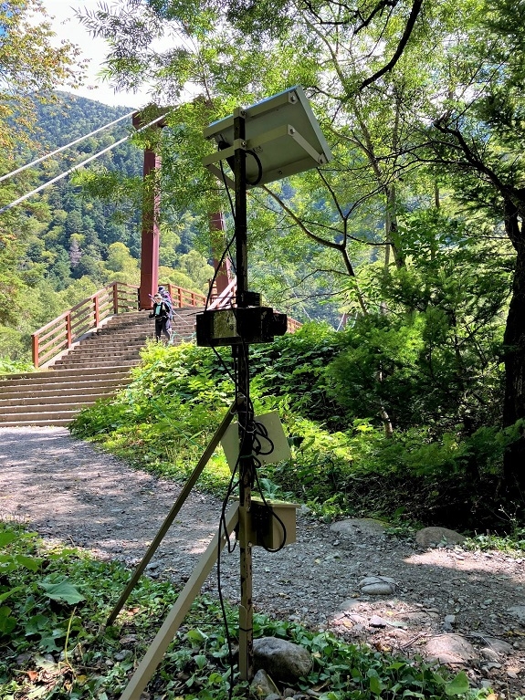 北アルプス南部地域(槍穂高連峰、常念山脈の長野県側)の登山道を維持するために、登山者皆さんの参加方法の一つとして、協力金を呼びかけているものです。今回、その対象地域を飛騨側の山々に拡大するために実証実験が開始されました。先日、取組の一環で上高地側(長野県側)の登山者と飛騨側の登山者の動態を把握するため、両方の主要な登山口に登山者カウンターを設置しました。上高地側は横尾の涸沢方面と槍ヶ岳方面の2箇所に設置しています。もし、登山者カウンターを見かけられましたら「北アルプストレイルプログラム」を思い出して下さい。