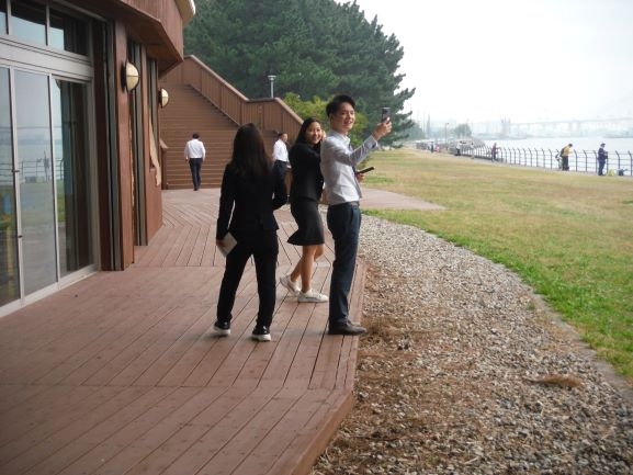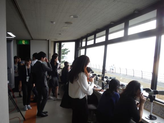 その後は名古屋市野鳥観察館にてスタッフの方から説明を受け、各自がフィールドスコープで藤前干潟の状況やちょうど訪れ始めた渡り鳥を観察されました。鳥に対しての知識が豊富な方もいて、言葉の垣根を越えてスタッフと交流されていました。