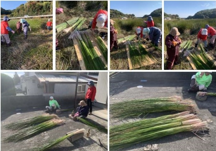 (地域の方々によるアンペライの刈り取り、加工作業のようす)