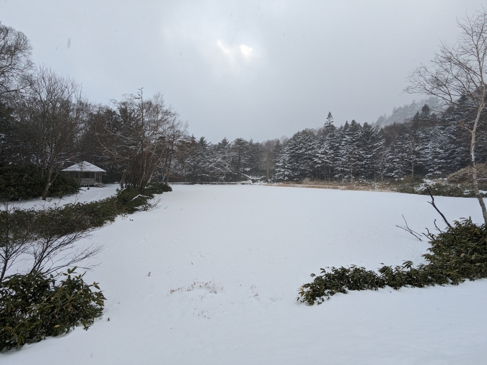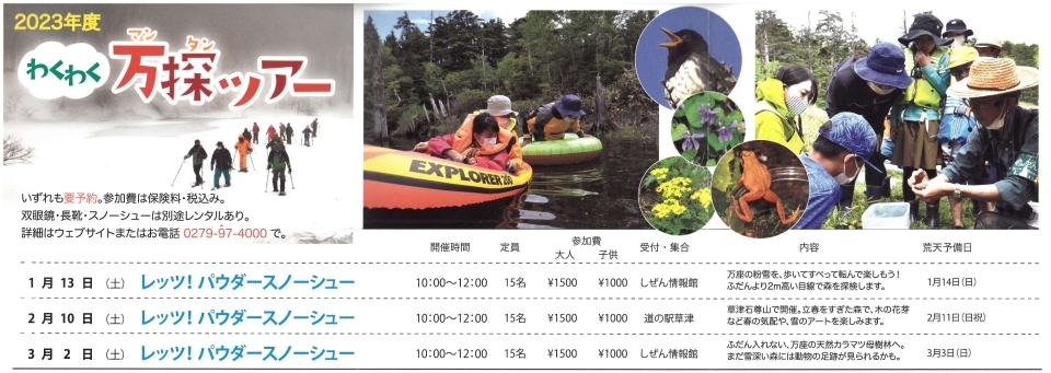 1月13日に万座しぜん情報館主催の万探ツアーで牛池でのスノーシューツアーが開催されるので、雪がもっと積もってくれればなと思います。