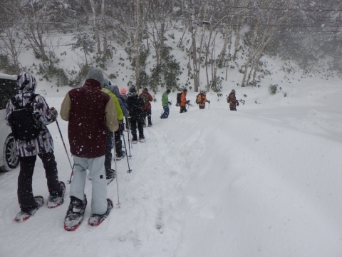 慣れていないとスノーシューをつけるのは意外と大変ですが、今回はスムーズに準備ができました。