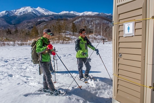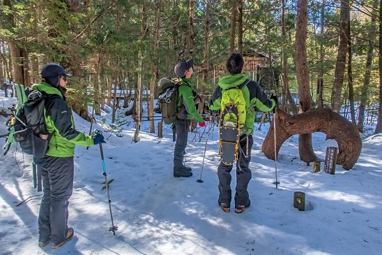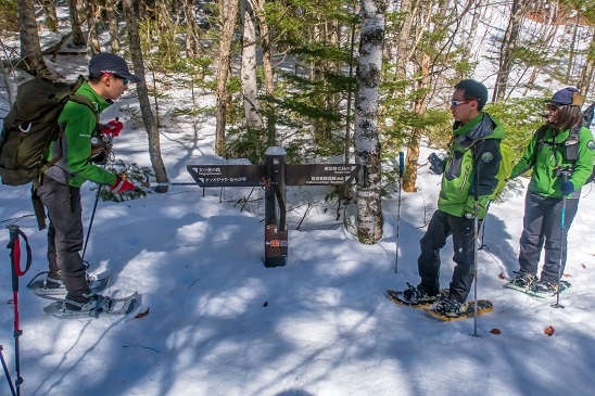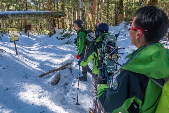雪のルートにはトレースがしっかりついており、多くの方が冬の乗鞍高原を利用していることがわかります。ルート上には雪の重みに耐えかねて折れた樹木や枝等がありましたが、ごみは落ちておらず利用状況のよさが窺えました。道標や案内板は見やすさや耐久性に工夫がされており、上高地の案内板等リニューアルの参考にできそうです。施設によっては乗鞍に暮らす地元の人たちの協力により作られたものもあり、その思いが伝わってくるような気がしました。