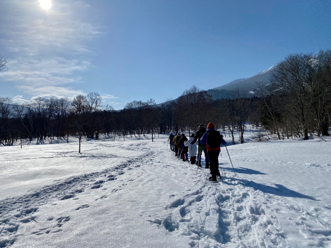 3月5日(日)、環境省と糸魚川ジオパーク連携協定締結10周年を記念したツアーが行われました。妙高高原ビジターセンターに糸魚川からの参加者をお迎えして賑やかなツアーとなりました。環境省は国立公園についての講義を担当、館長さんの展示解説、そしておまちかねのスノーシュートレッキング!ふかふかの雪とはいきませんでしたが、いもり池の周りはしまった雪で歩きやすく、夏は湿原で立ち入りできない場所も雪の上なら自由に移動できる♫パンパンに膨らんだ冬芽やたくさんの動物たちの足跡など、観察できてとても楽しいイベントになりました。ご参加いただいたみなさん、ありがとうございました。