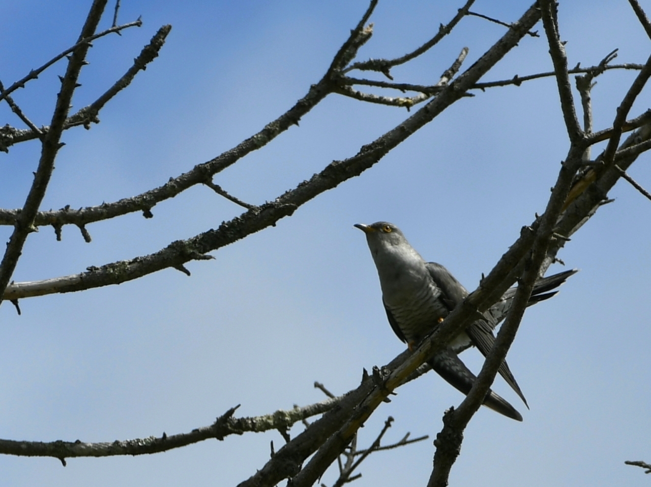 鳴いている時は尾羽をあげる特徴的なポーズをとります。鳴き声がしたら木のてっぺんよりもちょっと下のところに止まっていることが多いようです。