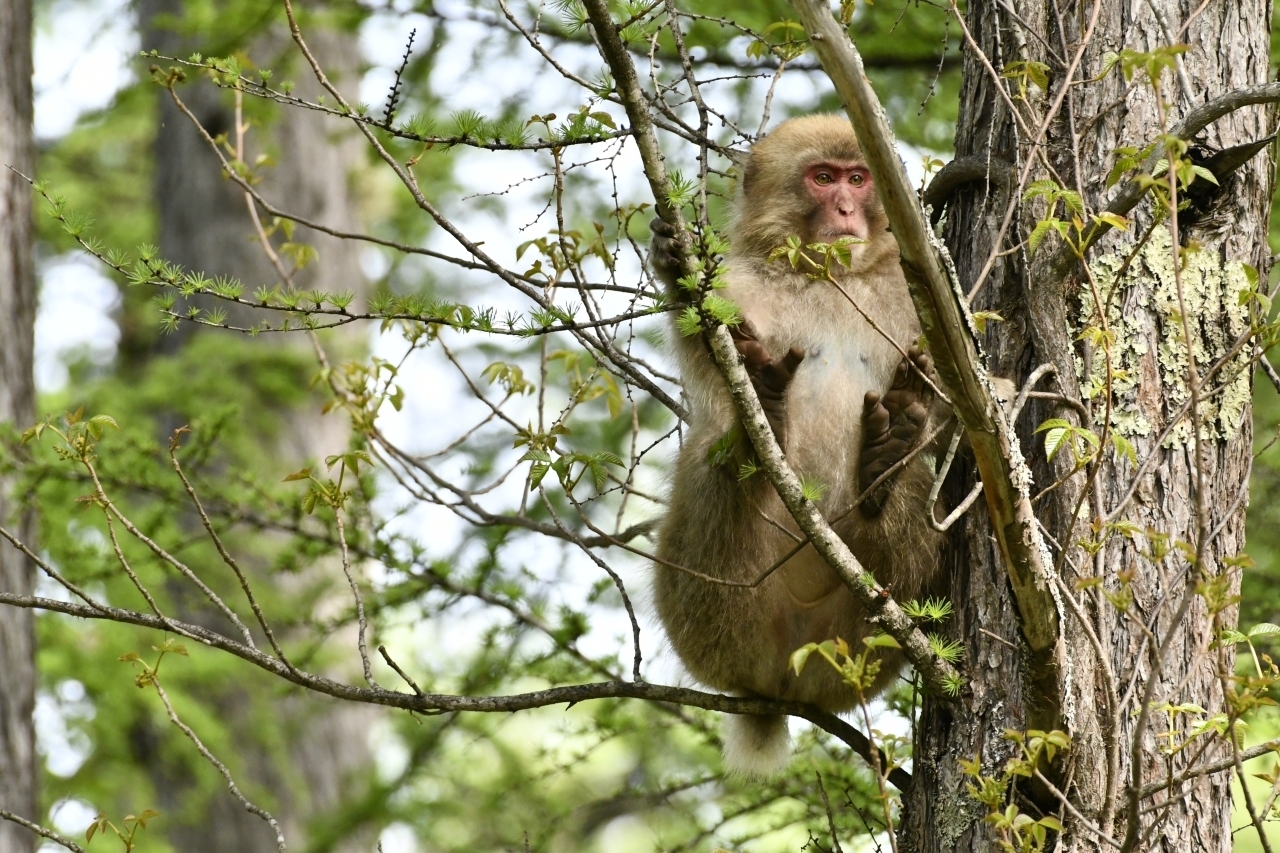 木の上でニホンザルがくつろいでいる姿を見かけることも。