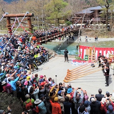 4月27日に河童橋のたもとで山の安全を祈願する「開山祭」が執り行われました。いよいよ本格的に今シーズンの開幕です。5月連休は雨の日もありましたが、平成31年以来最多の8万人近い方々にお越しいただきました。ありがとうございました!