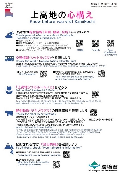 「上高地の心構え」、「上高地5つのルール+2」もお忘れなく!