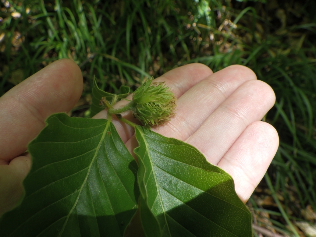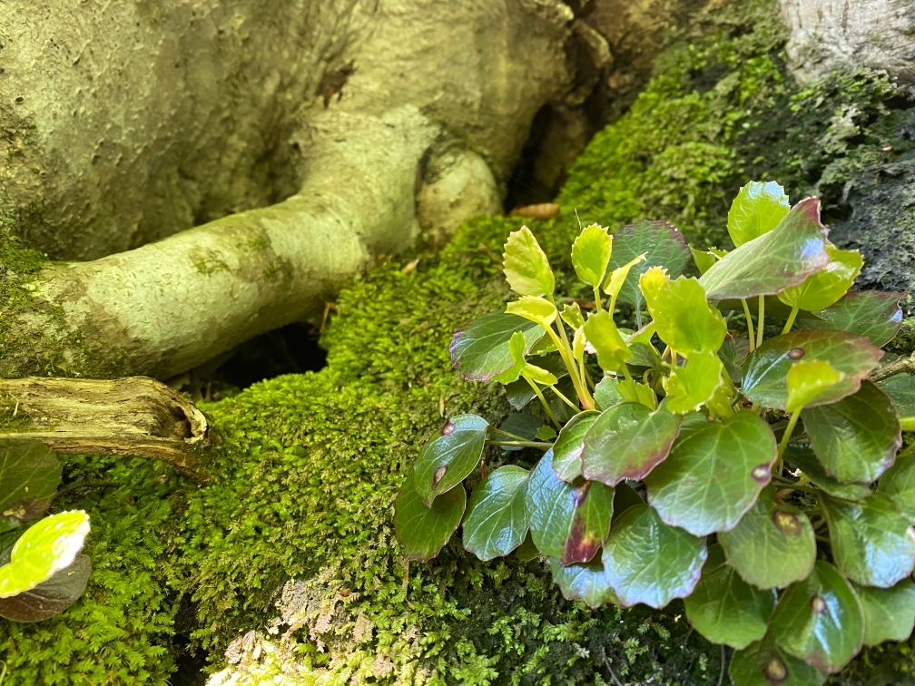 〈新芽がでたイワウチワ〉 〈できたばかりのブナの実〉