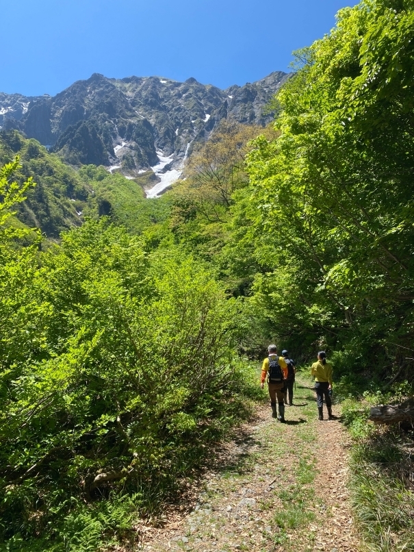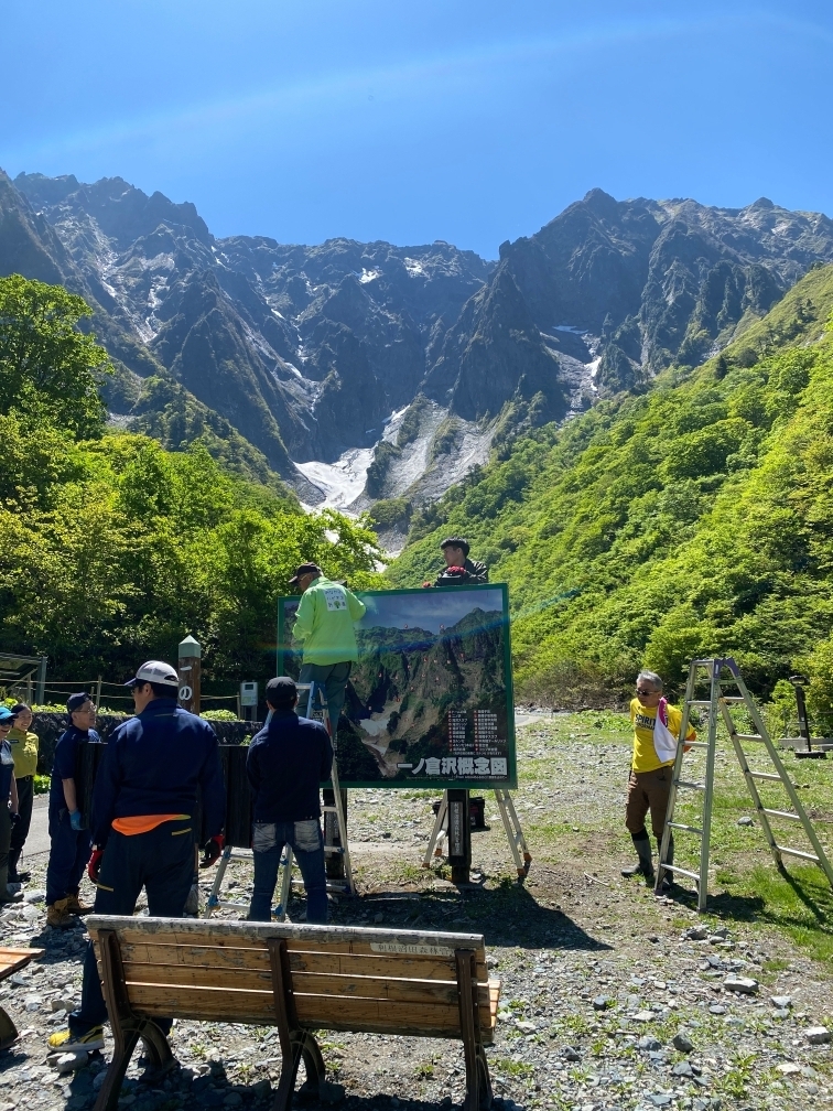先日、谷川岳のふもとの一ノ倉沢周辺ではシーズン始めの準備作業が行われました。