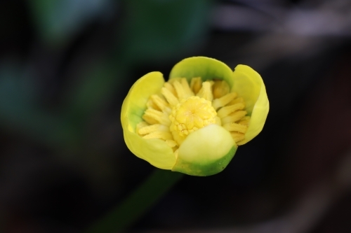 今日は水辺でトンボでも狙おうかと出かけましたが、よくよく目を凝らして見るとヒメコウホネの花が可愛く咲いていました。暗がりの中、この季節しか見られないと思うと感動です。