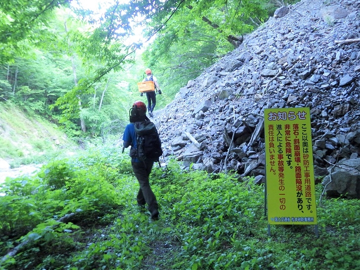 歴史のある「島々明神線歩道」。無事に開通して登山者が再び利用できる登山道となることを願ってやみません。