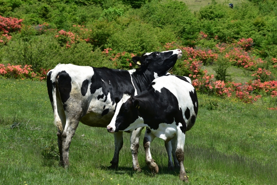 牛とレンゲツツジ