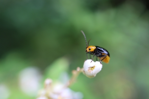 ウリ科の野菜にもつく甲虫で、葉を食害して穴だらけにしてしまいます。野菜農家さんにとっては害虫ですが、公園内で過ごしている姿を見ると愛らしいです。