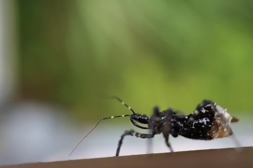 注射針のような口を獲物の体に突き刺して体液を吸う肉食性の昆虫で、食事の時以外も、危険を感じると身を守るために刺すそうです。