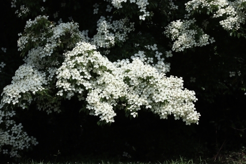 山を登っていると、大きなヤマボウシの木を発見しました。見事なまでに満開の花を付けていました。