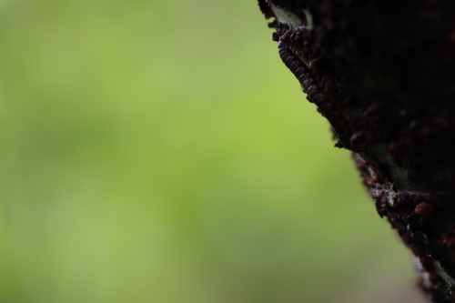 ジメジメした桜の木には、ヤスデが休息しています。朽ちかけの落ち葉などを食べる”掃除屋”で、人に危害を加えることもない益虫だそうです。ただ、見た目や臭いなど嫌がられることから、クモやアリのように”不快害虫”と呼ばれています。かわいそう。