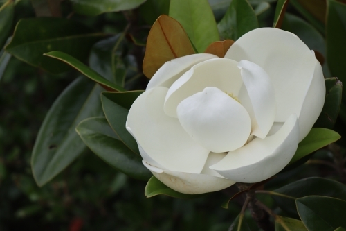 この季節にはタイサンボクも大きな花を付けてくれます。一輪だけ健気に咲く姿を見ていると、見とれてしまいました。