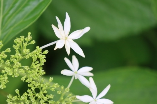 梅雨のこの季節、横山園地ではナンテンの花がきれいに揺れています。この後に、赤色や白色の実を付けるんですね。