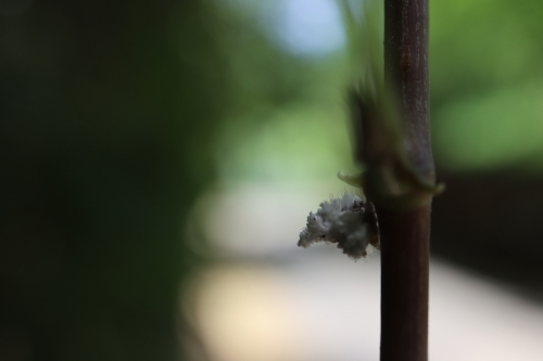 最後に個性的な益虫を紹介します。クサカゲロウの幼虫は肉食性で、アブラムシやハダニなどの小動物を捕食します。この子はカイガラムシのようなものを背負っていますが、この行動は、アリなどの天敵から身を守るためのカムフラージュとのことです。意外に歩くのが速いので驚きました。