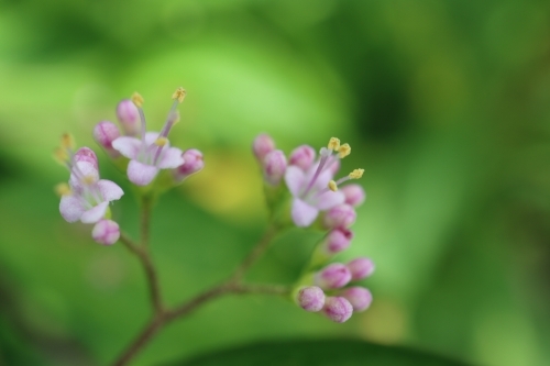 草花に混じるように、小さなムラサキシキブの花が咲いています。季節を感じているんですね。