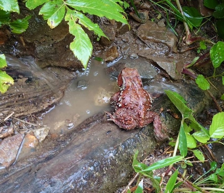 私達は参加することは叶いませんでしたが、この日の登山道では雨の日ならではの生き物に出会えました。