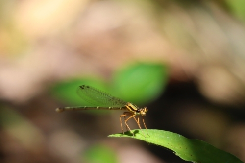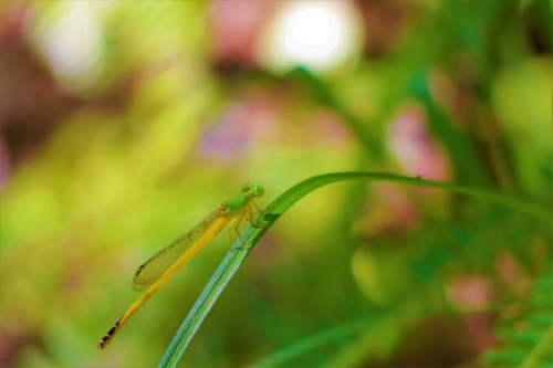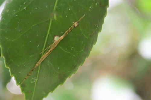 大池には、イトトンボ類がよく顔を見せてくれます。キイトトンボやこのモノサシトンボなどが静かに飛んできて迎えてくれます。愛嬌のある姿を見ていると飽きることがありません。関東地方では個体数が減少しているとのことで、守らなければならない大切な命です。
